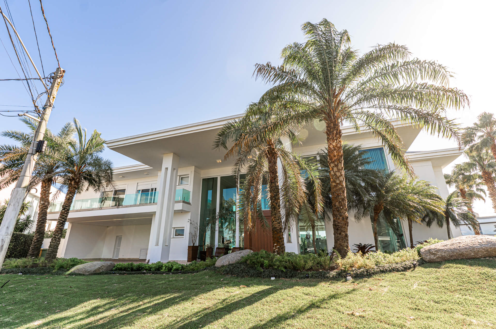 Na parte superior: 7 amplas suítes, com destaque para a suíte master com hidromassagem e outras com banheira de imersão e gigante varanda com deslumbrante para piscina, lago e condomínio.